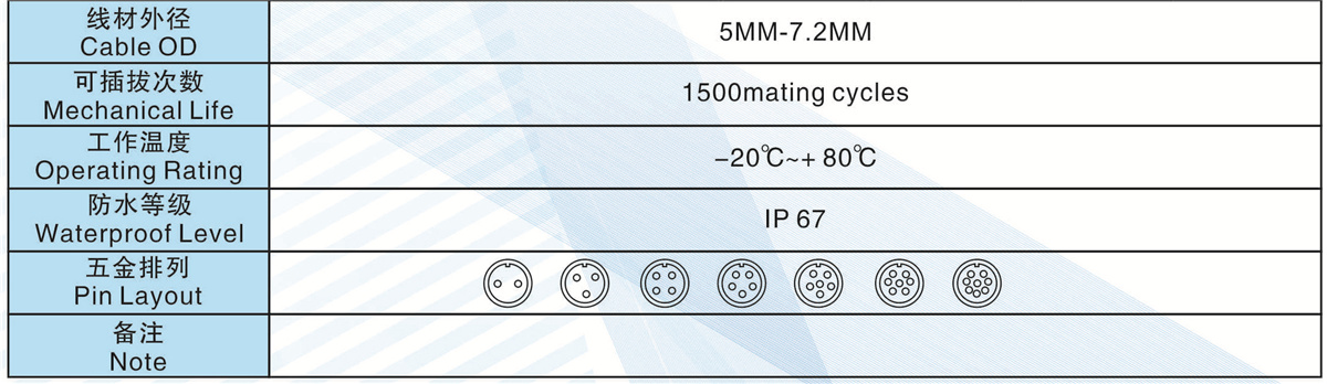 線材外徑(Cable OD):5.0MM-7.2MM